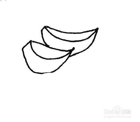 2、在其上部再画一个不规则的半圆,将其阔宽并于下面的半圆相交。