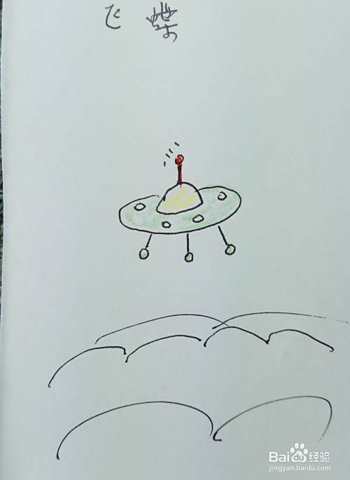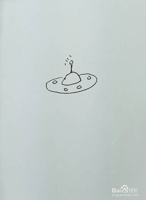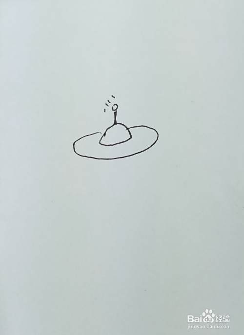 再用线条和弧线画出飞碟的外形轮廓,这个飞碟的形状像是一个草帽。