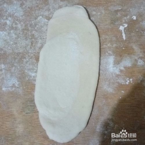 再压成扁圆,擀成椭圆,丛一边卷起。