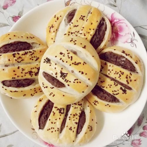 再用手按压成扁圆形,涂上蛋液,撒上黑芝麻,切口(切口是为了怕烤的时候饼裂口馅出来)。