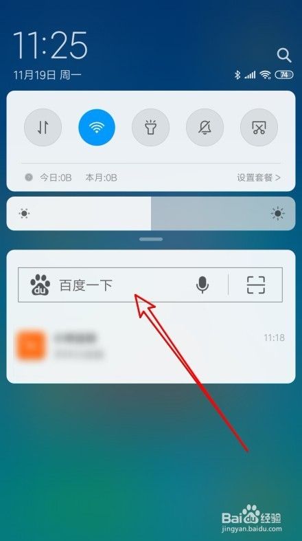 首先我们来看一下在华为手机上向下拉动屏幕,在打开的快捷菜单上可以看到百度快速搜索框