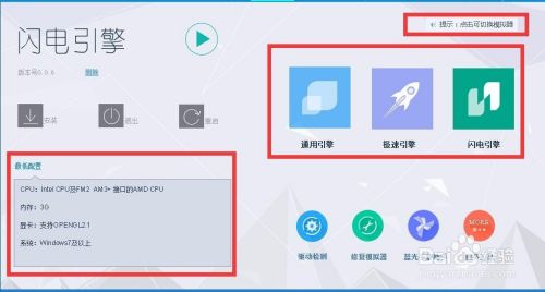 安卓引擎是电脑玩手游中的一个重要环节,在模拟器的安卓引擎里面大家可以看到三款引擎,分别是通用、闪电以及极速,不同引擎对电脑配置的要求也不一样,同样流畅度也不同。这里建议大家安装闪电以及极速版引擎,效果更好。