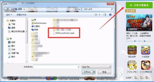 引擎添加完成后,就可以来安装游戏了。在我的应用里面,点击安装本地游戏,然后选择刚刚下载好的时空召唤游戏包来进行安装。