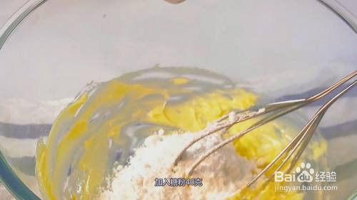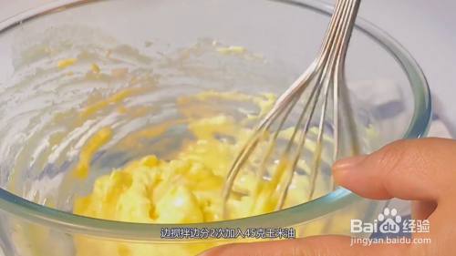 把65克的黄油搅拌到融化,加入糖粉40克,充分搅拌均匀。