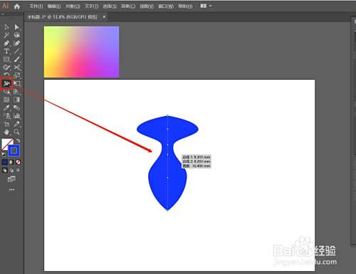 》点击宽度工具,鼠标放在直线的不同位置,向外拉,拉出如图形状