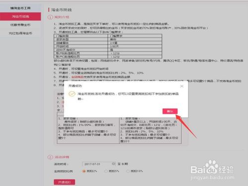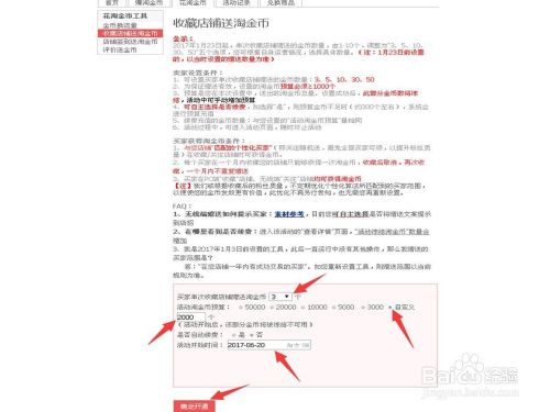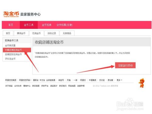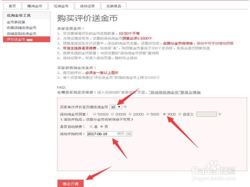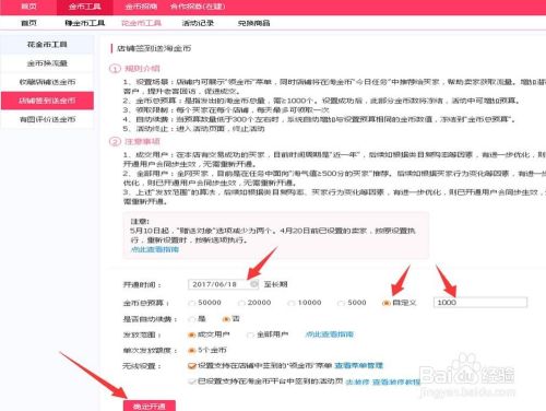 第七,点击”收藏店铺送淘金币“——”立即运行活动“,此活动的淘金币需不少于1000个才可创建。如图设置好送几个,预算金币数,活动开始时间,点击确定开通。