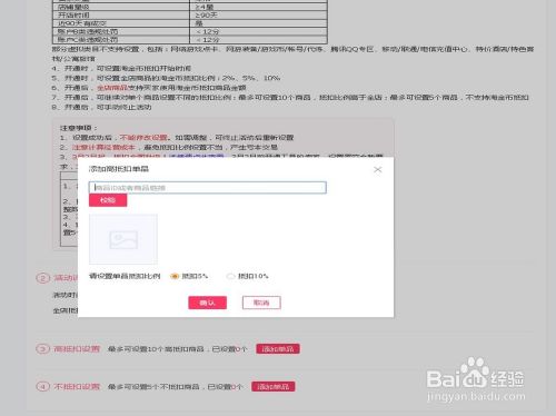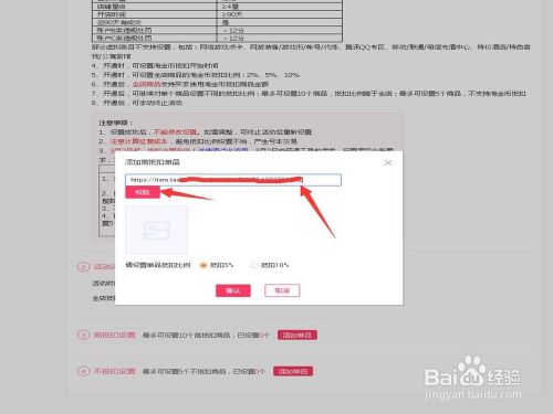 第四,如果要单独设置某件商品的抵扣比例,则点击“高抵扣设置”右侧的“添加单品”,复制商品的链接到框里,点“校验”,选择抵扣比例,点击确认。