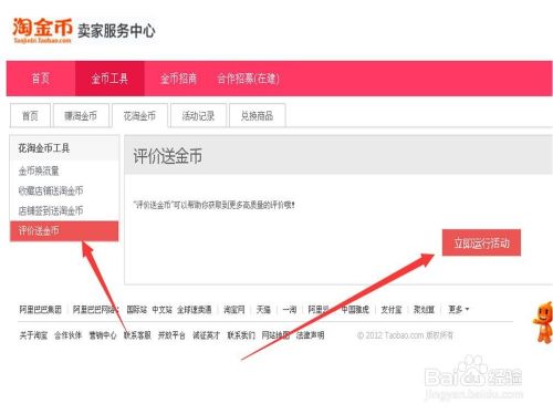 第九,点击评价送金币——立即运行活动,设置赠送个数,金币预算,活动动开始时间等,确定开通