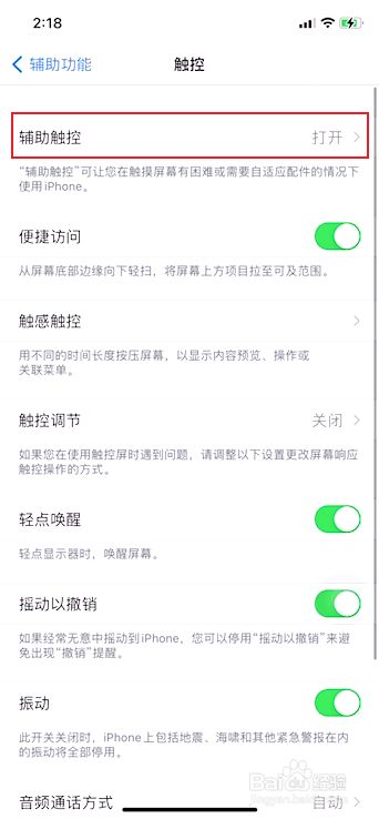然后辅助触控功能设置为开启状态。