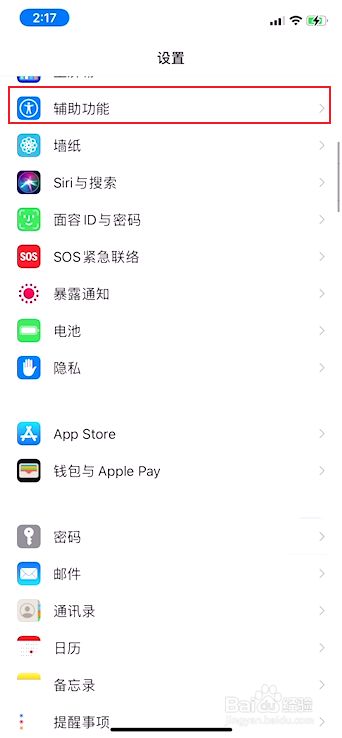 在设置界面,点击辅助功能。