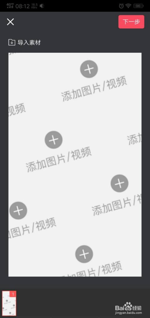 3、点击添加图片或者点击导入素材,在相册中选择一件图片替换。