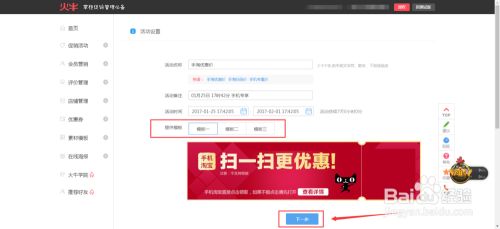 进行活动设置,活动名称、活动备注、活动时间、选择适合宝贝详情页风格的模板,点击下一步