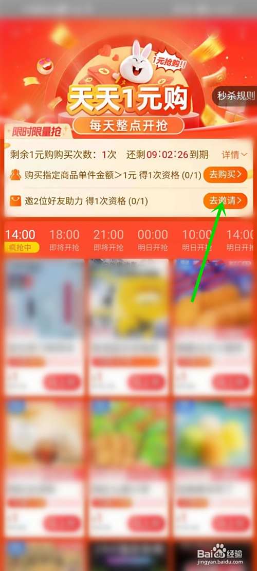 进入一元购界面,有机会获得一次1元购资格。