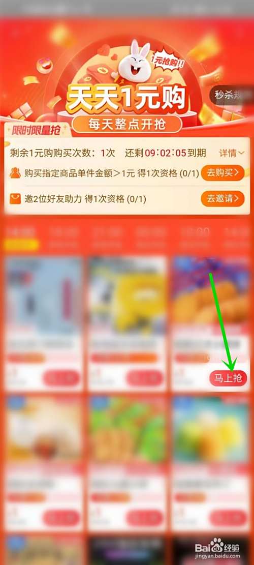当获得一元购资格后,即可购买页面中的1元商品。