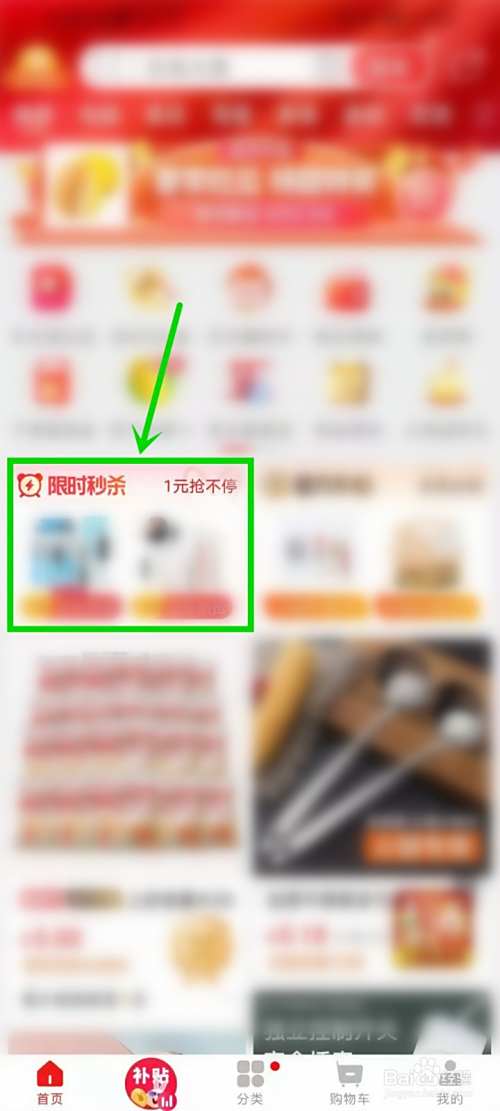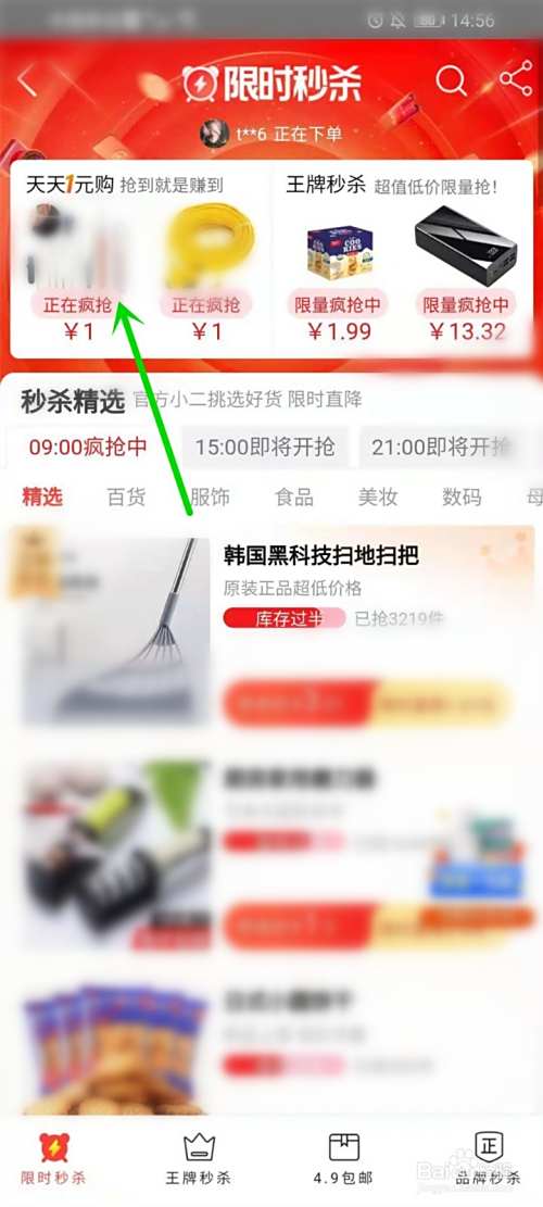 打开淘特APP首页,在页面中找到”1元抢不停“板块,点击进入。