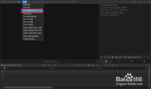 我们点击后就会弹出一个菜单我们选择里面的导入纯文本文件和视频文件