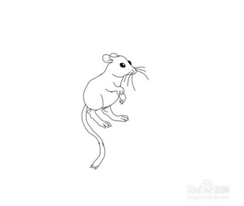 最后我们再在老鼠的身体的下面再画出老鼠长长的尾巴,这样老鼠我们就画好了,如图所示:
