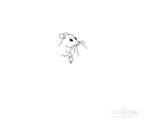 再在老鼠头部的下面画出老鼠的脖子,然后再画出老鼠的两只胳膊,并在画出老鼠的爪子,如图所示: