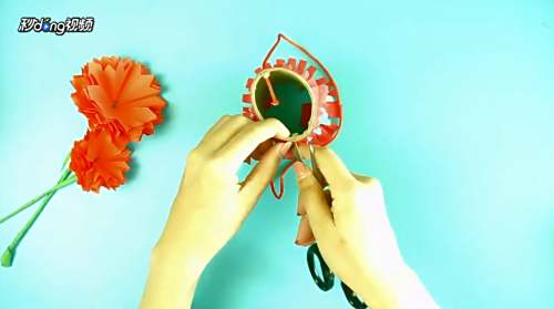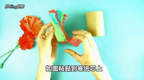 1根据纸卷芯的周长,把皱纹纸剪成长条,把长条剪成须状。
