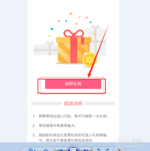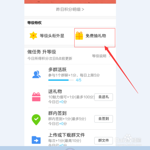 看到自己的群聊等级之后,继续往下拉,有一个“免费抽礼物”。