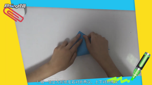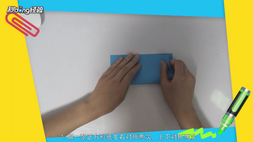 取一张正方形纸,左右对折两次。