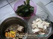 1海带买打成结的,洗净;老豆腐切块,最好用水焯一下,防止煮时碎掉;
