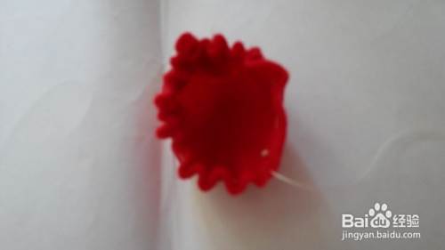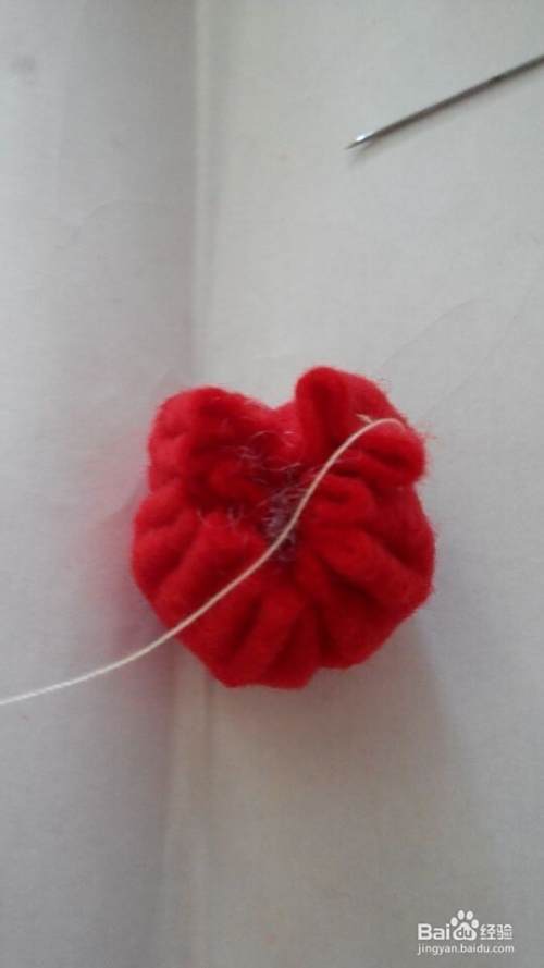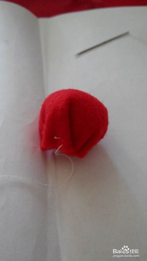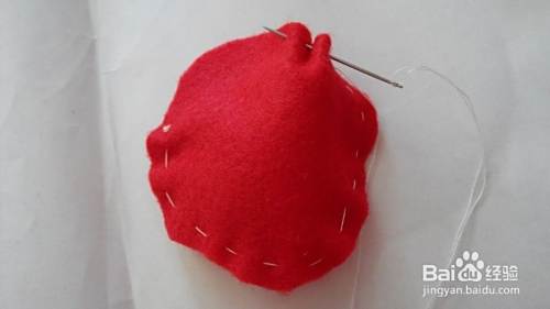 因为圆形还未固定,所以塞棉花的时候可以一边拉着线收缩,一边塞入棉花,这样使得效果更明显。