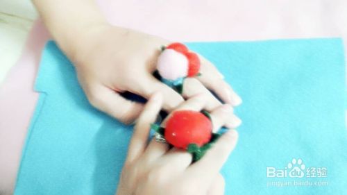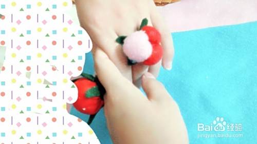 最后在草莓上点上白色凹痕,这样子可爱的草莓戒指就做好了。