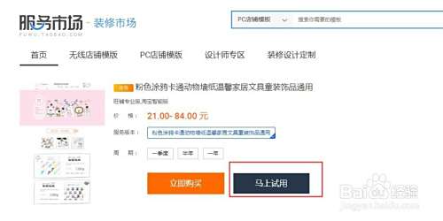 选择喜欢的模板试用,建议试用满意再购买(为了更直观看到效果建议先上架几个宝贝,那样预览就可以知道模板跟宝贝是否搭配了),购买以后在编辑页面点击发布即可