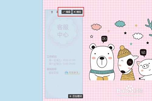 将鼠标移动到模块上可以进行编辑和删除
