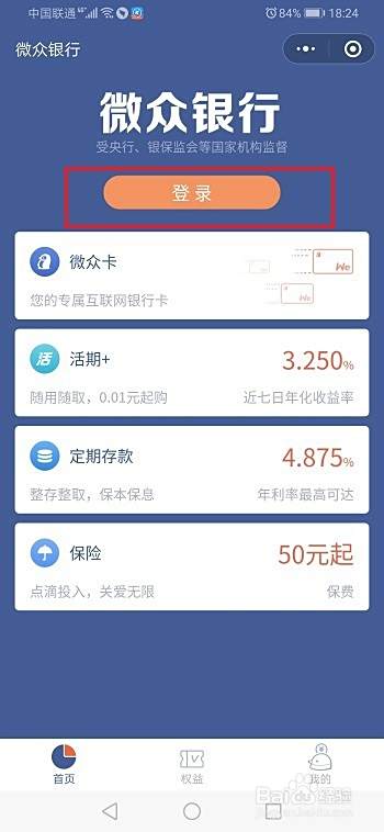 第三步进去微众银行之后,点击微信登录,如下图所示: