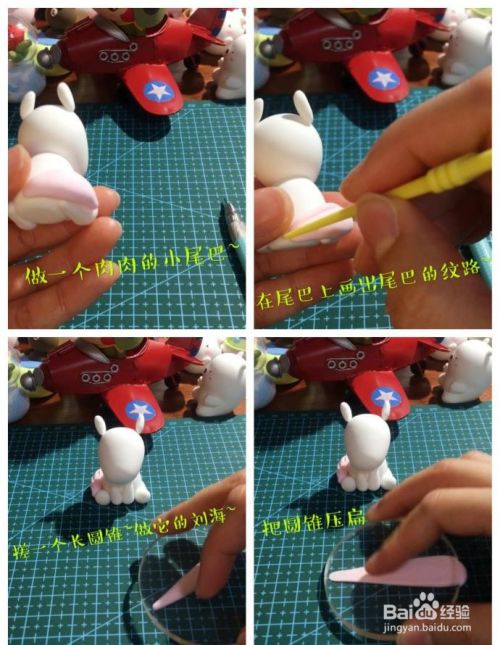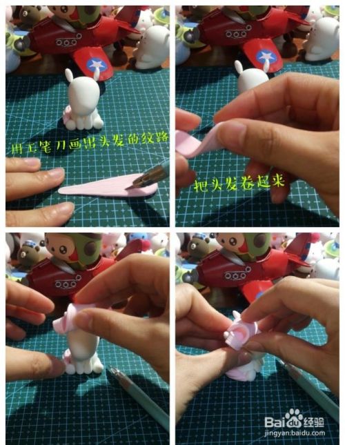 把粉色的粘土卷曲起来,这样子就组合成为毛发的样子,真的非常呆萌。这样看起来是不是非常的卡通呢?