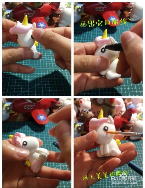 用黑色的粘土来做上独角兽的眼线,再给加上美美哒腮红,这样看起来超级的萌!