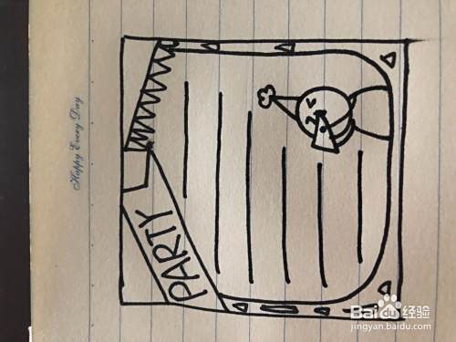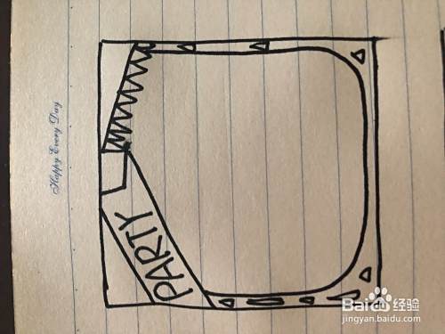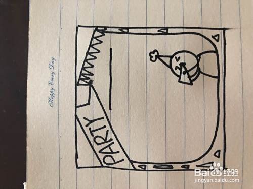 最后,我们用铅笔和尺子把里面的线条给他画出来用黑笔写出关于聚会的一些内容在用虾米上班线条给他调。