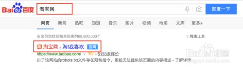 在百度搜索引擎下,搜索"淘宝",点击搜索的第一信息,进入淘宝官方首页,或者在输入淘宝网址.如下图红框内。
