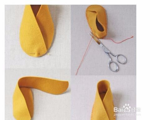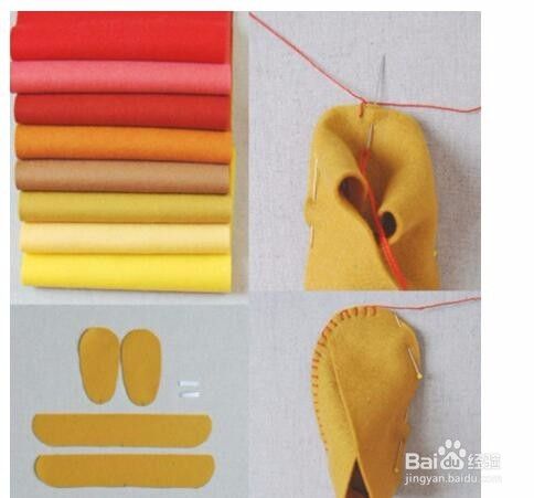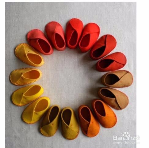 其实看起来很多图但是如果你认真看了之后你就会发现本质上是非常的简单的。一个脚脚的形状做鞋底,然后剪出图上的长条形作为鞋帮。用大头针别好,固定住基本型之后用阵线缝合一圈就可以。是不是超级简单呢。快来亲手给您心爱的宝宝做一双吧。