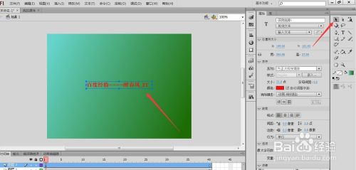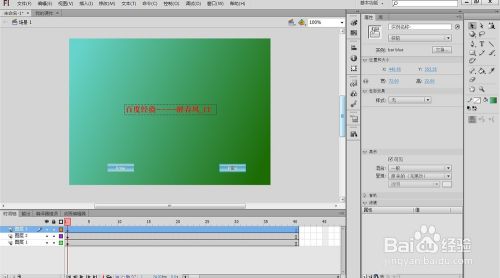 我们先制作课件的第一页,选择文本工具,设置其属性,然后新建一个层,在第一帧的地方,在舞台上用文本工具拉一个框,写入自己想要的文字。