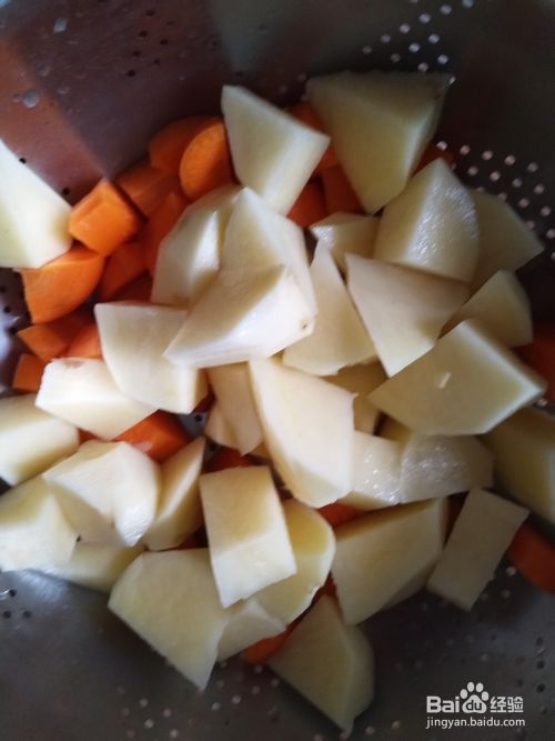 准备食材胡萝卜茄子洗净切块,土豆去皮切块备用