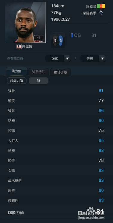中后卫——恩库鲁(荣耀赛季):恩库鲁2007年就来到了摩纳哥的青训营,之后一个赛季,他就升入了一线队,效力球队三个赛季,是球队的主力中后卫,在游戏中恩库鲁的防守还是不错的,盯人紧,抢断准确,头球也很出色,就是他的身高只有184,需要搭配一个身高比较高的中后卫。