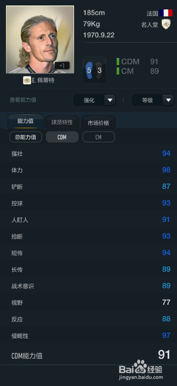 后腰——埃曼努埃尔-佩蒂特(名人堂赛季):佩蒂特是法国的著名中场球员,代表国家队出场了62场,并且随队夺得了1998年的世界杯,佩蒂特在摩纳哥队效力了九年,帮助球队夺得1997年法甲联赛冠军。佩蒂特各方面都很不错的,有体力有防守,身体也很强壮,而且还有185的身高,偶尔还可以去争抢个头球,佩蒂特在游戏中使用起来很顺手。