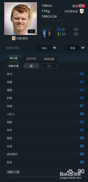 左后卫——约翰-里瑟(19世界传奇):里瑟是挪威的功勋边后卫,他给我留下最大的印象就是他的大力任意球,几乎能撕破所有对手的防线,他曾经在摩纳哥效力过三个个赛季,是球队的主力边后卫,在游戏中里瑟也是顶尖的边后卫,双速快,突破能力强,防守出色,同时他的任意球也跟现实一样,威力巨大。
