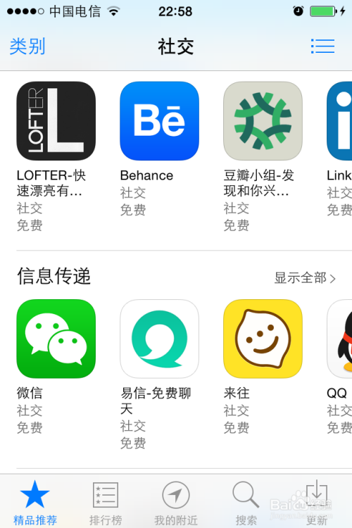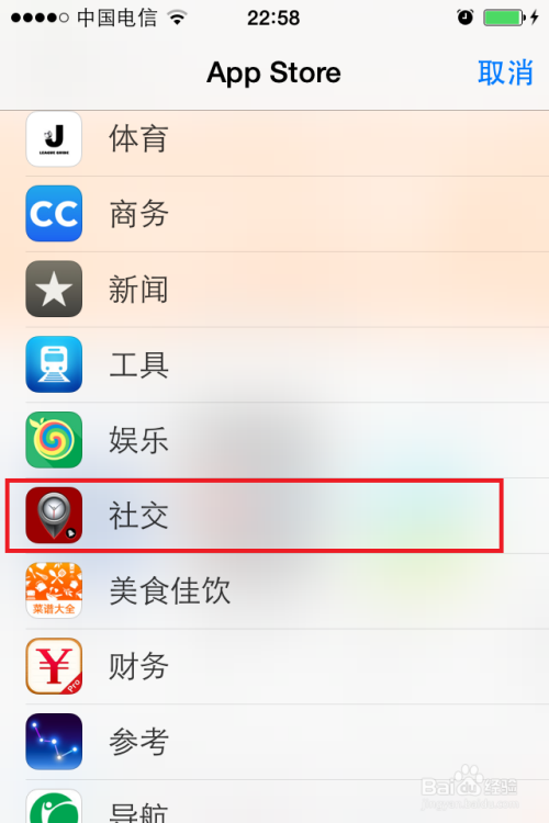 点击【社交】分类后,打开【社交】分类子页面,如图所示
