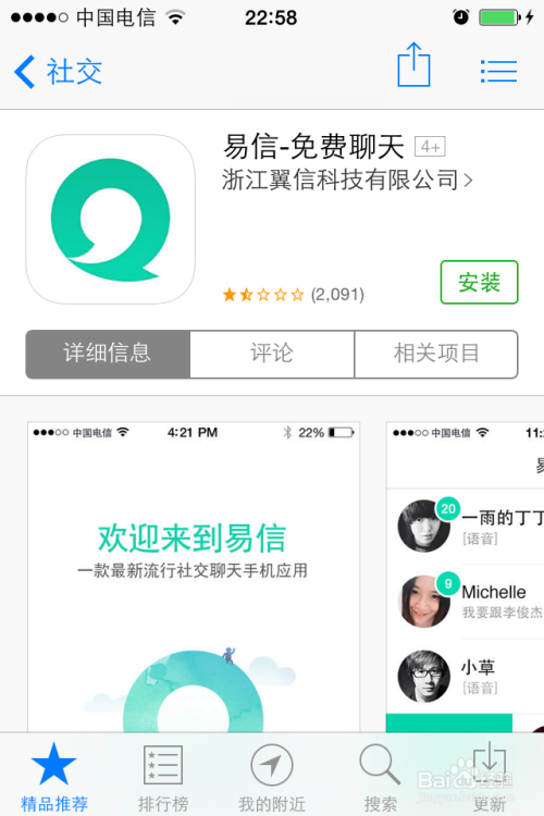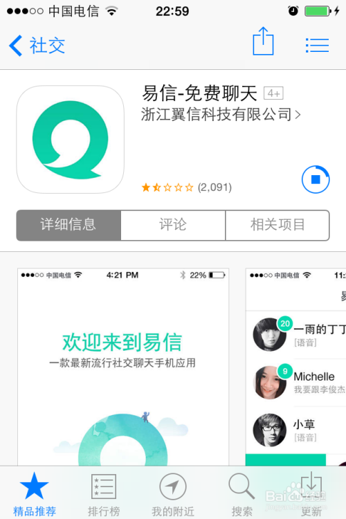 选择【易信】应用图标,进入【易信】应用介绍界面,如图所示