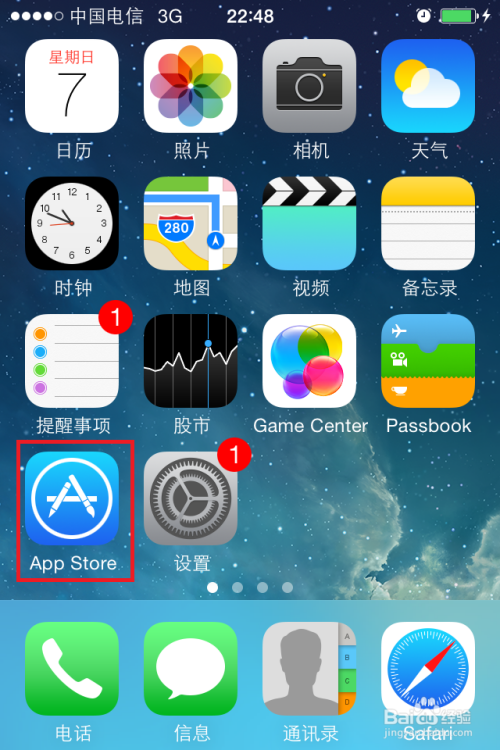 在iPhone5S主界面找到【App Store】应用,如图所示