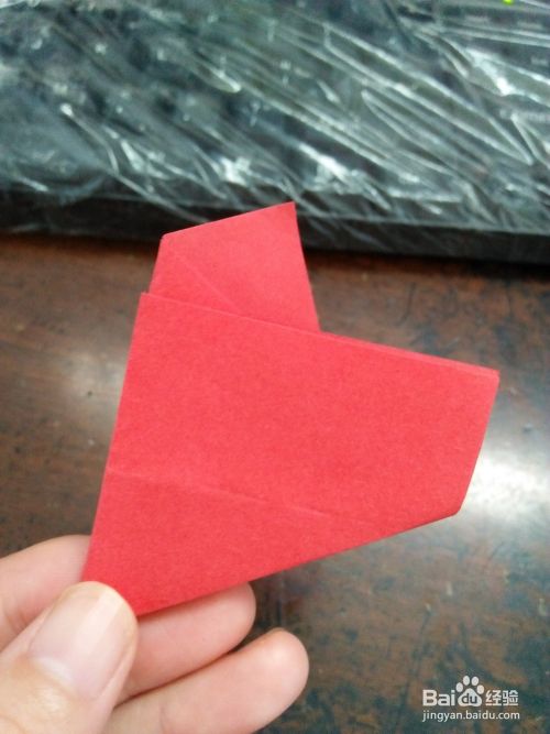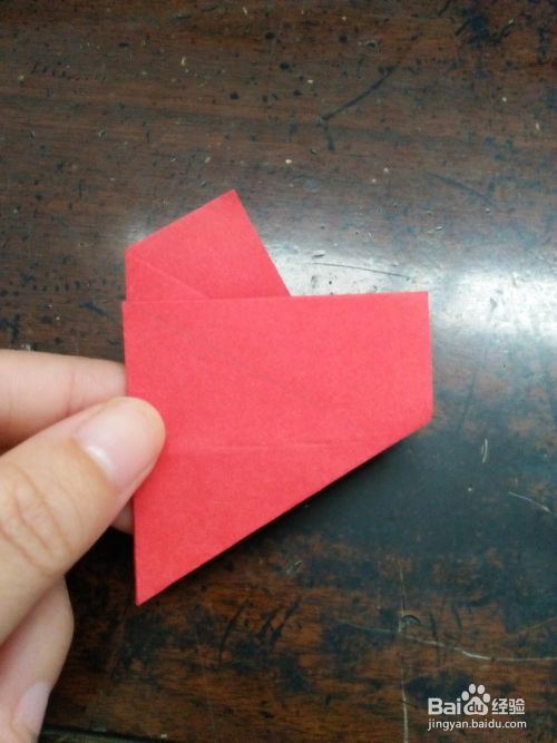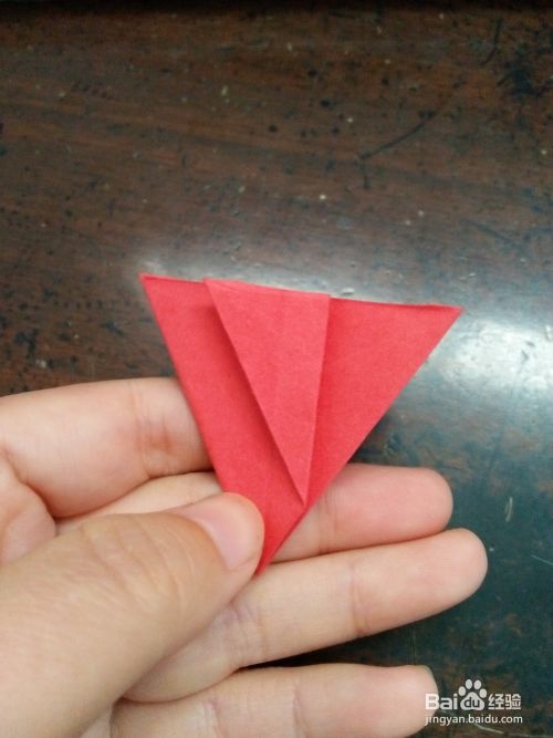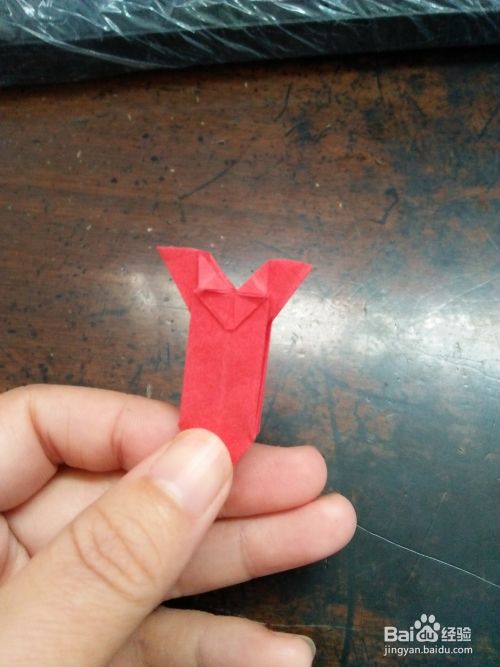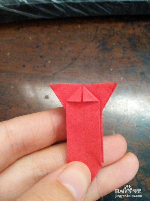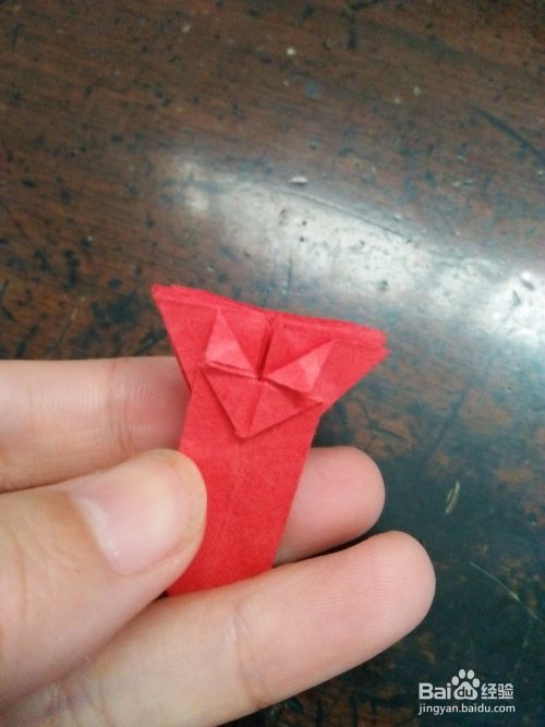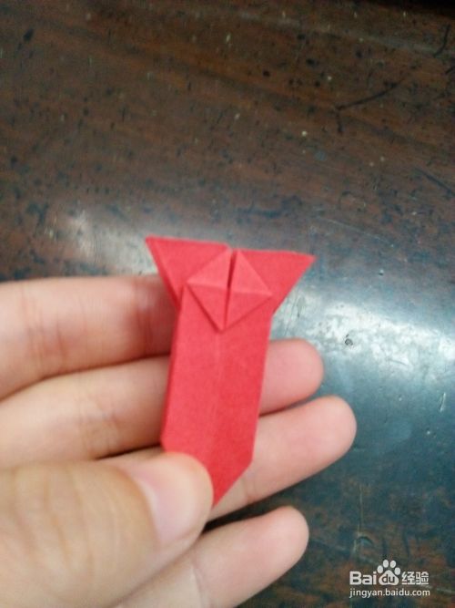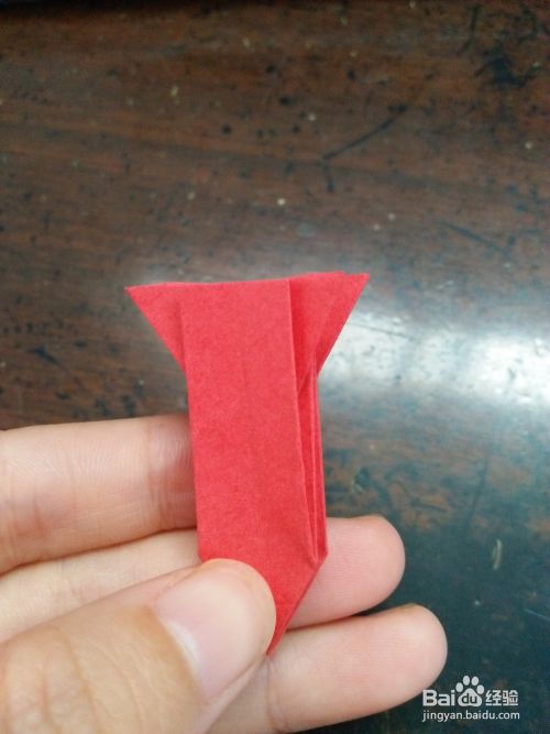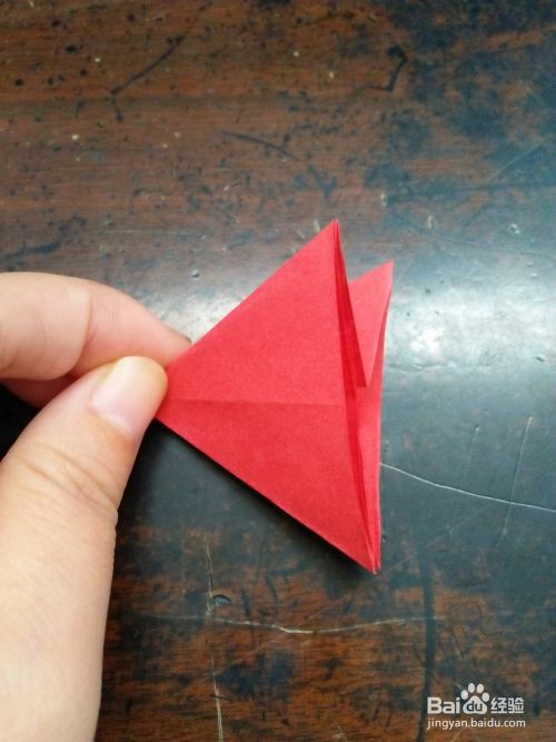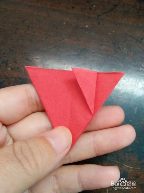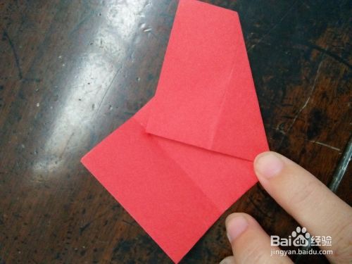 把中间的两个小角向内对折,把折好的纸拉开向下压平。