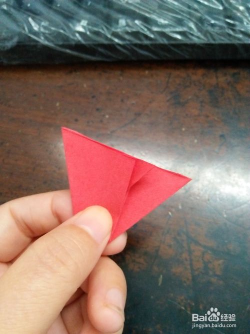 把右边的角向中线对折,打开后,把两个折痕的中线对折。