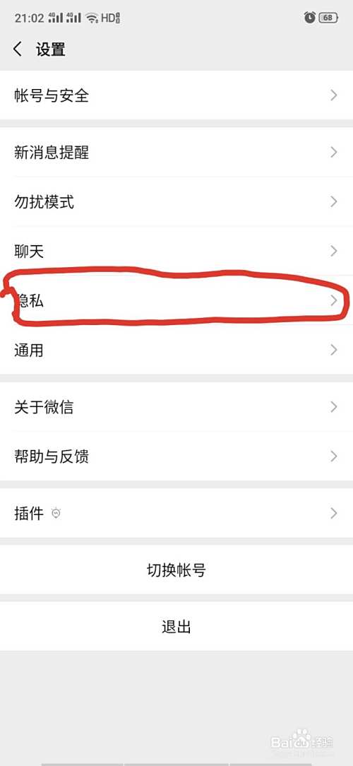 2、点击隐私。