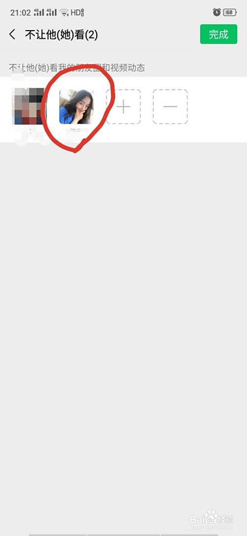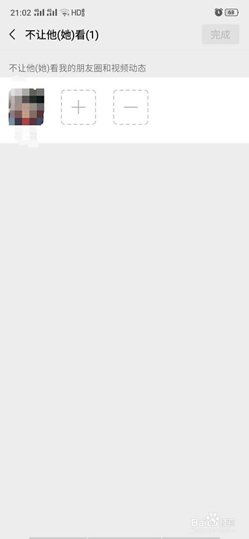 4、这里“+”号代表添加,就是添加微信好友不让他们看你动态。