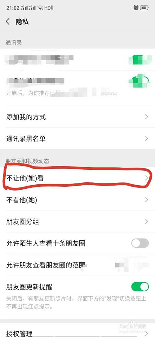 3、点击不让他(她)看。
