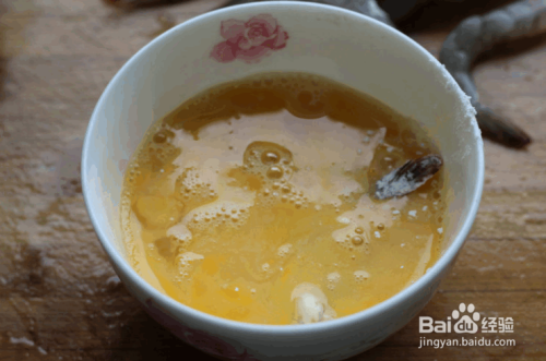 5.虾中入料酒、盐、胡椒粉腌制五分钟。
